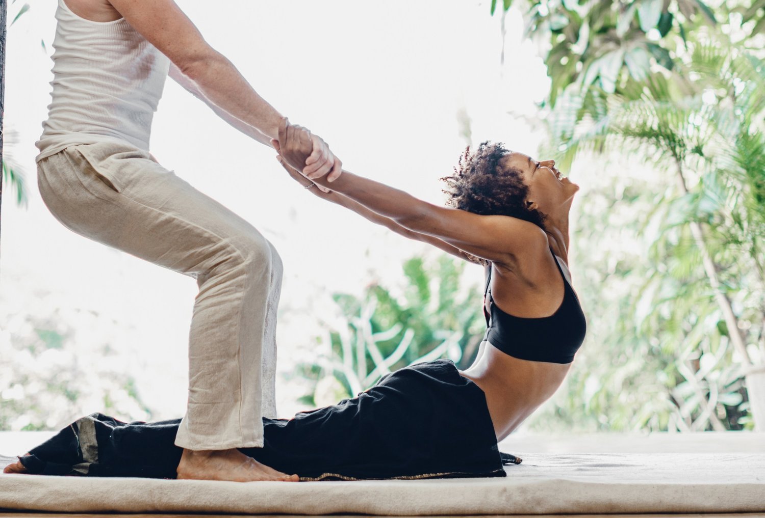 AYM is performed on a floor mat, allowing for greater freedom of movement during the massage and stretches. A combination of hands, feet, and elbows is used to apply firm pressure, helping to locate and release muscle tension. As the session progresses, assisted yoga stretches are incorporated to deepen the effects of the massage and open up areas like the shoulders and chest, creating a sense of space and freedom in the body.